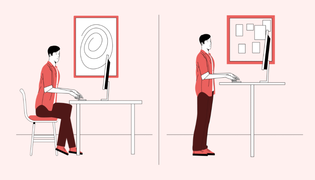 For those working from home long-term, a standing desk setup can be a great addition. While motorised desks can be expensive, there are cost-effective alternatives like desktop converters or simple DIY solutions. Alternating between sitting and standing helps reduce spinal compression, improve circulation, and enhance focus. If you opt for a standing setup, ensure that your monitor remains at eye level and your wrists stay straight while typing.